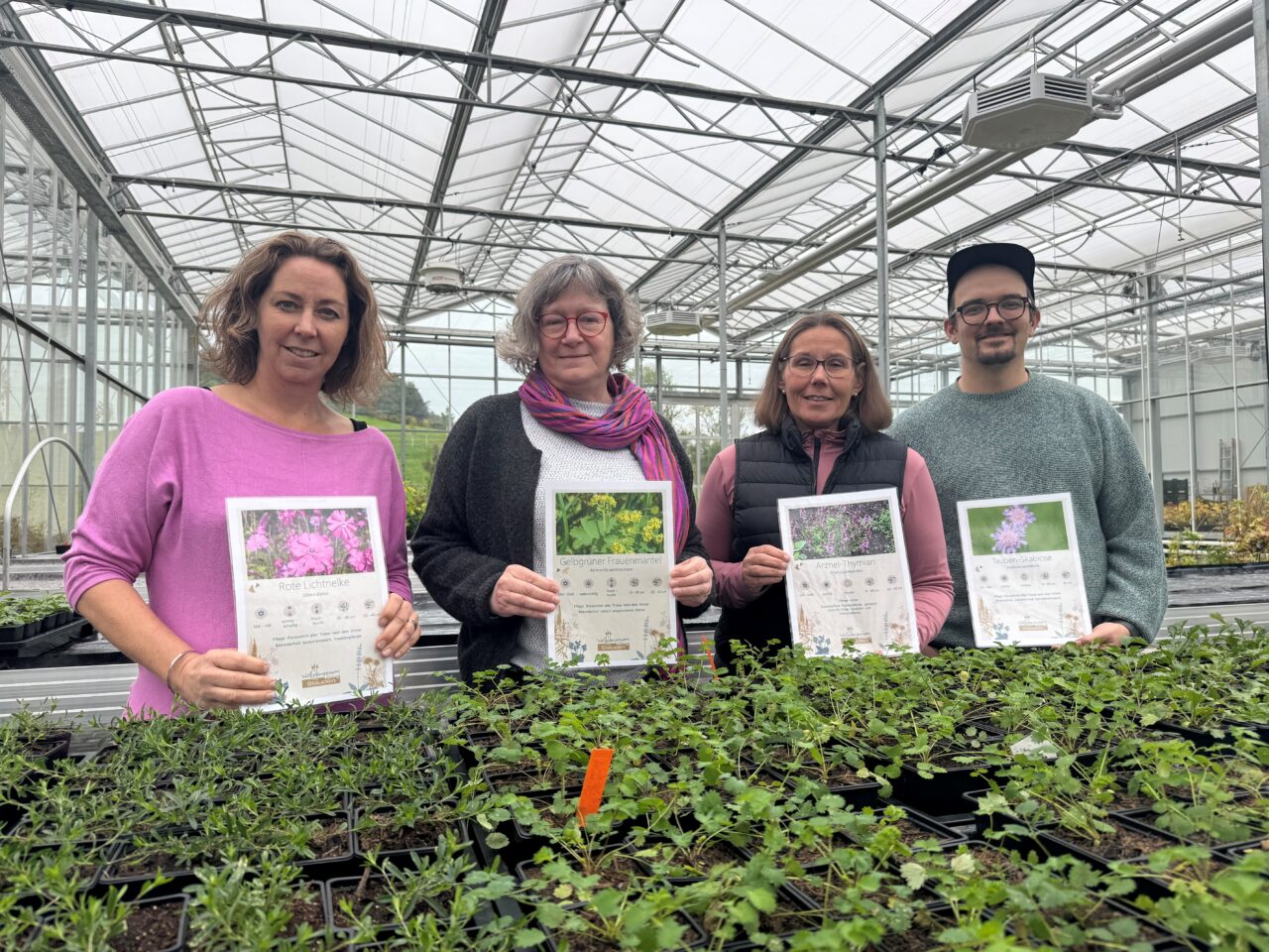 Derzeit werden bereits 50 Wildpflanzenarten aus gebietseigenem Saatgut bei sieben Gärtnereien zu Stauden gezogen und stehen zum Verkauf. Diese heimischen Wildpflanzen sind optimal an die lokalen Bedingungen angepasst und bieten unseren Bestäubern lebenswichtige Nahrungsquellen. Besonders wenn diese mehrjährigen Pflanzen in Beeten miteinander kombiniert werden, entsteht ein bunt blühendes Staudenbeet, das von Frühjahr bis Spätsommer blüht und zudem pflegeleicht ist. Auf unserem Flyer finden Sie nützliche Informationen: